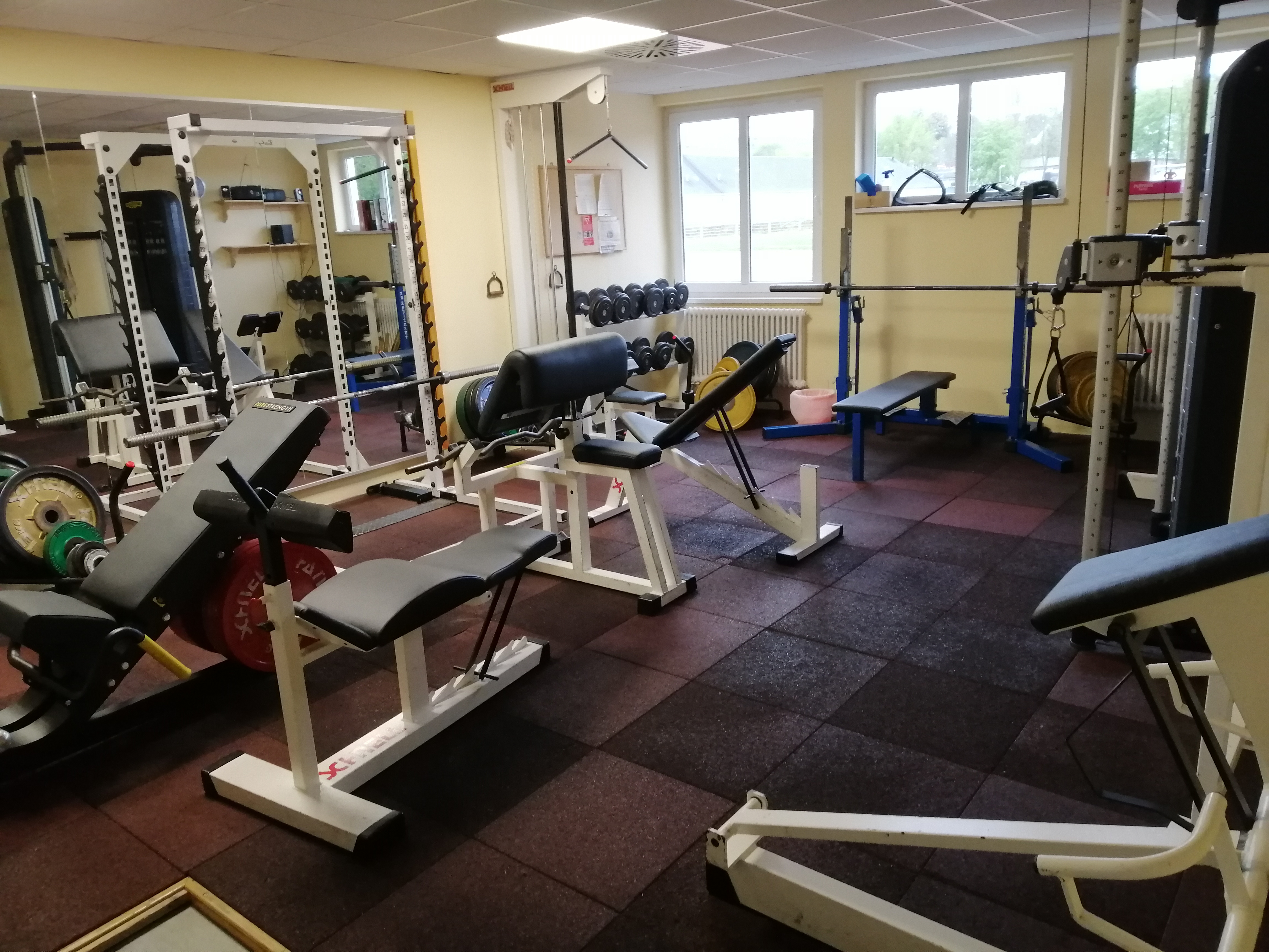 Trainingsort Kraftraum in der vereinseigenen Sporthalle |